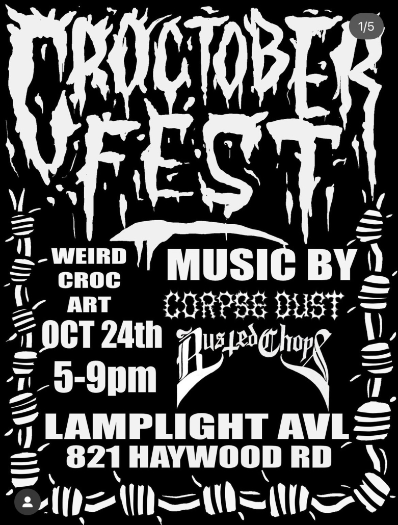 At long last Croctober Fest is here! Rescheduled from last October, this event will feature a playful series of silly Croc-inspired art + music from Corpse Dust and Busted Chops.